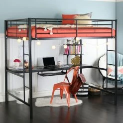 Budget 🔔 Middlebrook Designs Middlebrook Abner Black Twin Low Loft Bed With Desk And Shelves 🧨