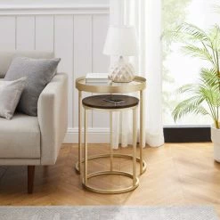Best Pirce ๐ Middlebrook Designs Contemporary Glass-Top Nesting Tables Dark Walnut/pale Gold ๐