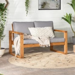 Flash Sale ๐คฉ Middlebrook Designs Middlebrook Hudson Acacia Frame Love Seat With Grey Cushions โญ