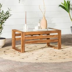 Hot Sale โ๏ธ Middlebrook Designs Middlebrook Hudson Acacia Frame Coffee Table With Glass Top ๐