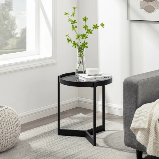 Cool, contemporary, and chic, this smoked glass side table is just what you’ve been looking for to top off your space. With a tempered safety glass surface and sturdy metal base, this table is reliable enough to display your favorite dรฉcor, while its simple silhouette offers a taste of small-space-friendly style. With a sleek build and a quick and easy assembly, this accent piece will be sprucing up your abode in no time.