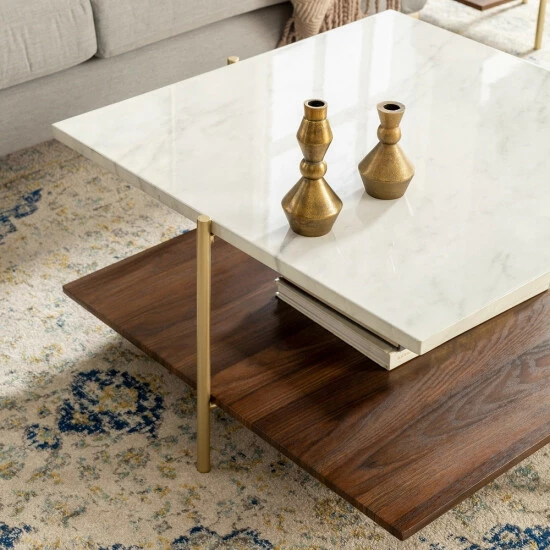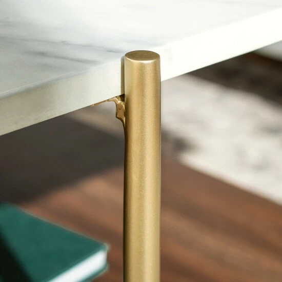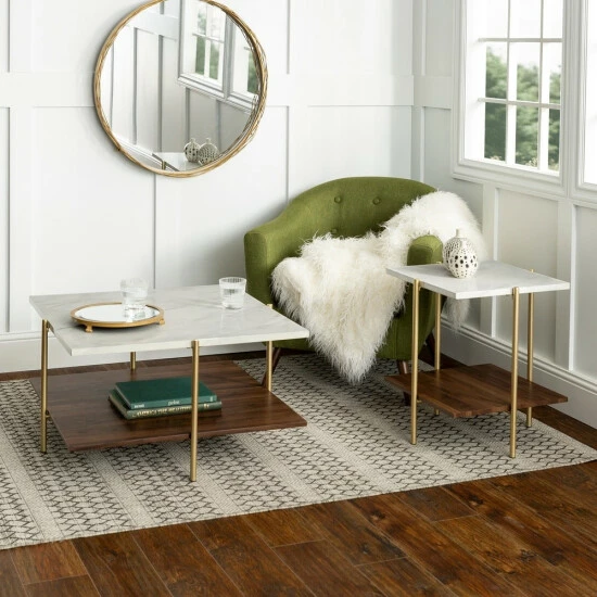 Make a sophisticated statement in your living room with this glamorous table set from Silver Orchid. A brilliant combination of style and function, these tables boast a faux marble laminate top, one lower laminate shelf and metal legs for an altogether elegant, sleek and stunning look.