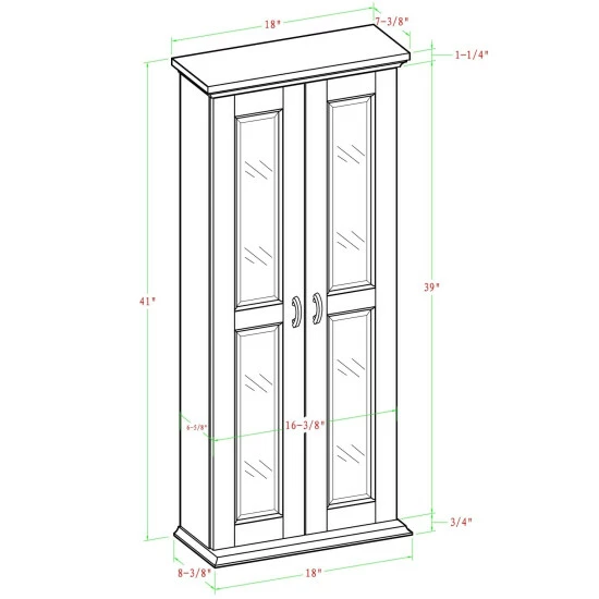 - assembled dimensions: 18″wide x 8″deep x 41″high