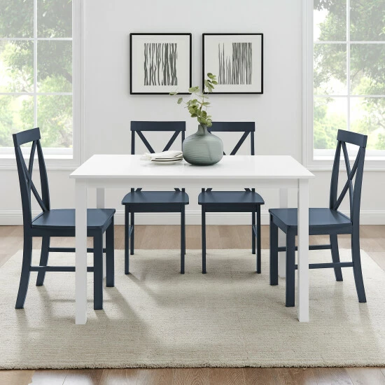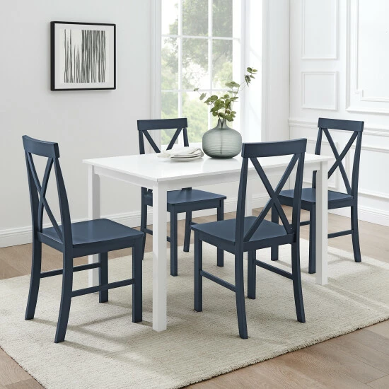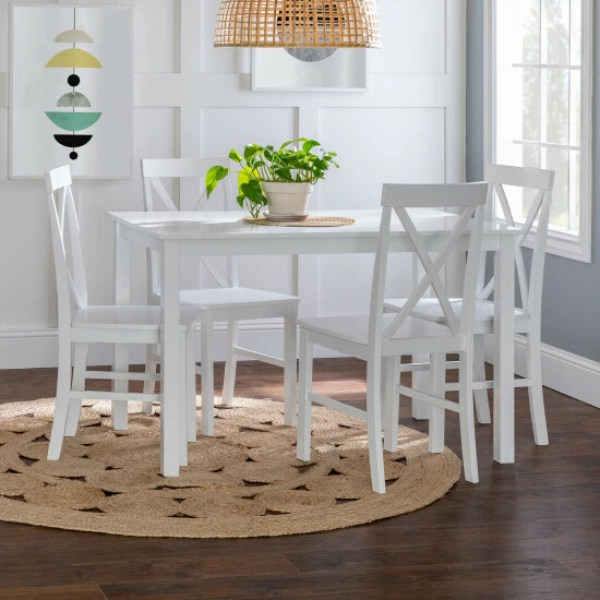 - 5-piece set includes 1 rectangular dining table and 4 x-back dining chairs