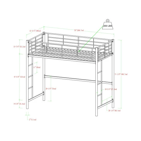 Beloved for its compact foot print, this loft bed is a necessity for your child’s bedroom. ย Featuring full length guardrails on all sides of the twin loft and two integrated ladders, this loft bed constructed of powder coated steel promises safety, stability and style.ย