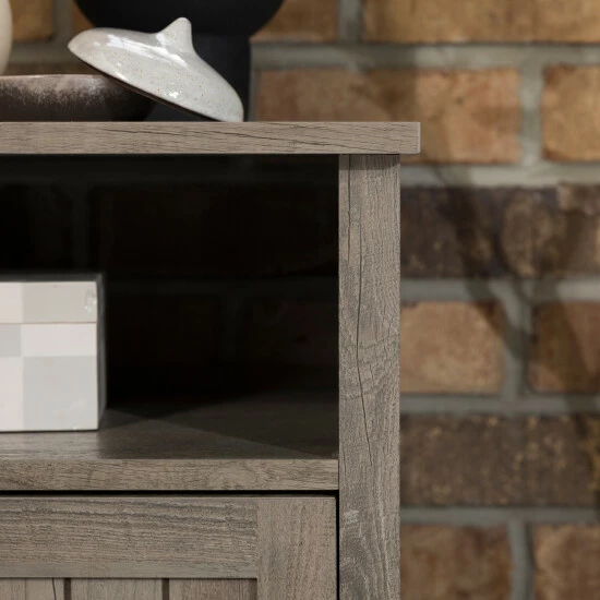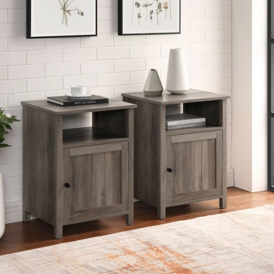 Add simple, rustic charm to your bed side with these nightstands from Middlebrook Designs. These pieces emanate a vintage, farmhouse look that is chic, yet stands the test of time. Constructed of high grade MDF and laminate, each bedside table features one open shelving area above one door with groove-detailing. These nightstands are sure to become favorites in your modern farmhouse.