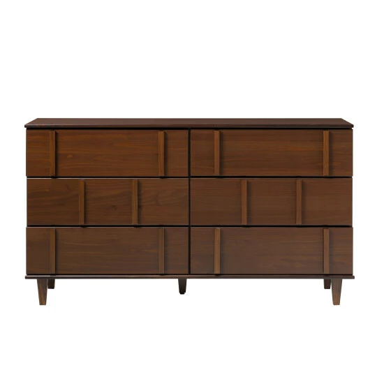 Sleek, vertical drawer pulls, spacious storage, and a solid wood build lend this piece all the components of a modern knockout. This unique dresser will pull your space together with its mid-century design, and the six spacious drawers on smooth wood runners will keep your space neat and tidy. With its minimal build, this storage chest is suited for any interior style, and whether it sits in your own sanctuary, guest room, or child’s bedroom. With a sturdy solid pine build, this chest will serve up years of sustainably stylish storage for years.