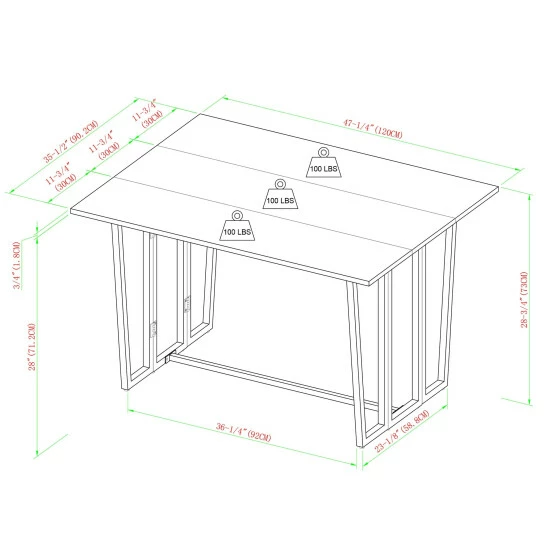 - Assembled dimensions: 47″ wide x 36″ deep x 29″ high