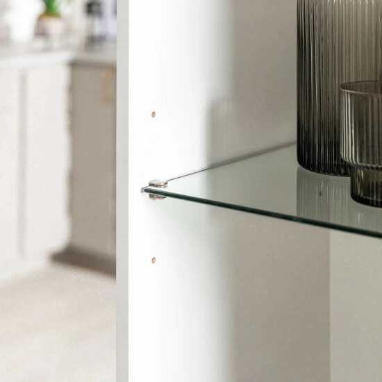 - High-grade MDF, laminate and clear tempered glass construction