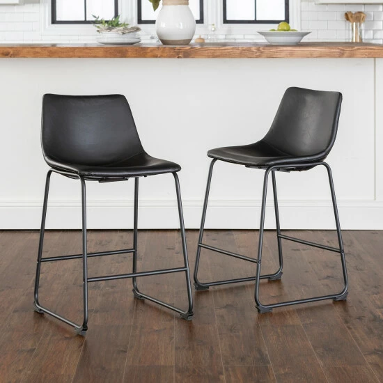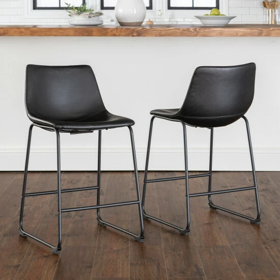 Add contemporary urban flair to your counter with the Prusiner counter stool set from Middlebrook Designs. Featuring a black faux leather upholstery, this modern stool set has a chic but simple look that leaves a lasting impression. These counter stools have contoured bucket seats and a built-in footrest for extra comfort.