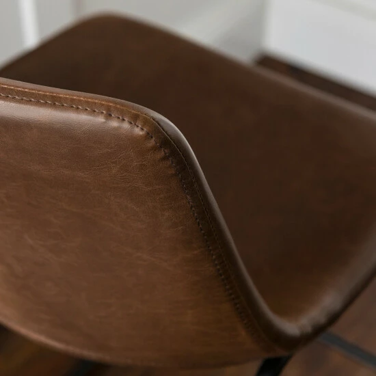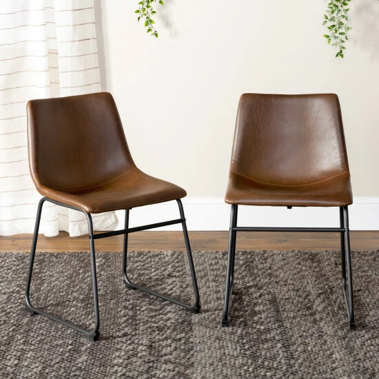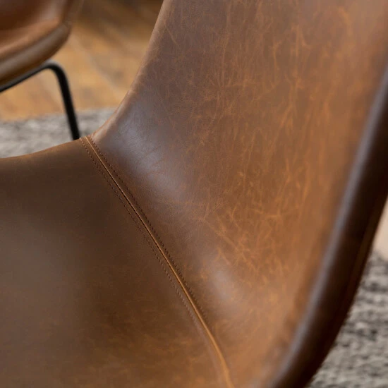 Sophistication meets comfort in this set of dining chairs from Carbon Loft. With brown faux leather seats supported by powder-coated steel-finished legs, these dining chairs provide curved comfort with a standard height back for support.ย