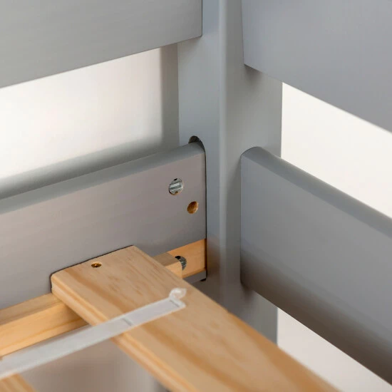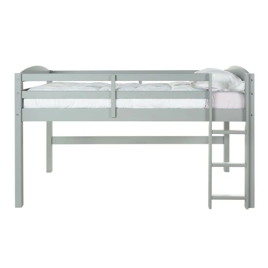 This dazzling low loft twin bed, made of solid pine and drenched in a painted finish sure to please anyone, is ideal for anyone, from college student to child. The low loft height ensures a safe climb to the bed, combined with enough space underneath for a fort to satisfy any imagination.