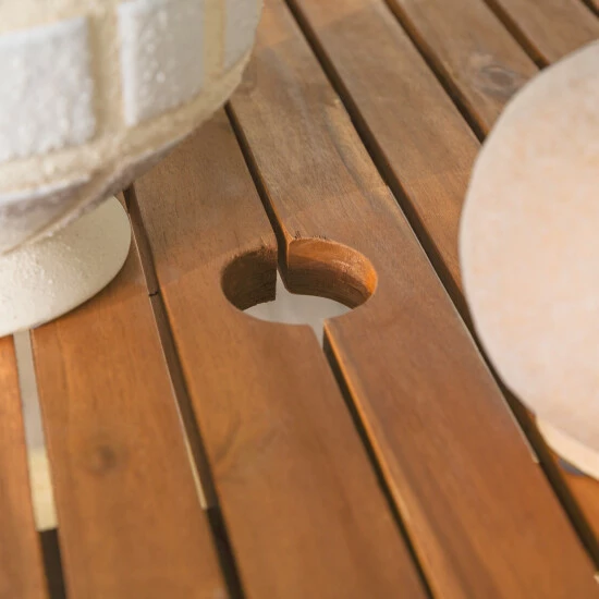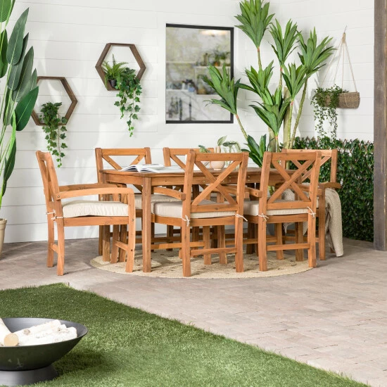 Dine al fresco around this patio dining set from Havenside Home. Spring, summer and autumn dinner parties will be infinitely better when seated outside with family and friends. Crafted from solid acacia, this dining set is structurally sound as well as good looking. With six X-back chairs, you’ll easily seat six around the table for an intimate gathering. Your deck or patio will be a prime environment to share food, entertain and make memories.
