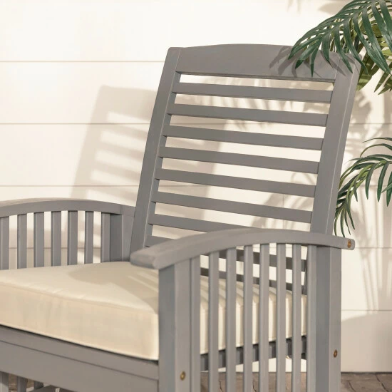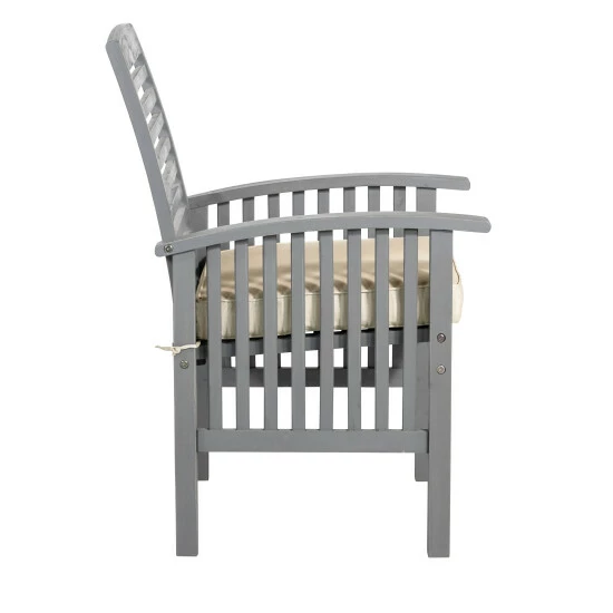 Bring a welcoming touch to any patio or deck with these beautiful wood patio chairs. Constructed from solid acacia hardwood, each chair is naturally sturdy yet stylish. Feature them as a stand-alone piece or with our exclusive dining or conversation sets. Included are two deep-seated chairs with plush, soft seat cushions.