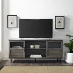 Best Pirce 🎁 Middlebrook Designs Middlebrook 58-inch Groove Door Highboy TV Console Dark Walnut 🎁