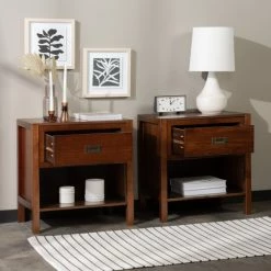 New 😀 Middlebrook Designs Middlebrook Mid-Century Modern Detailed Solid Wood Nightstand Caramel 🧨