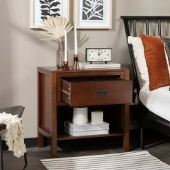 Discount 💯 Middlebrook Designs Middlebrook Mid-Century Solid Wood 1-Drawer Side Table Walnut 🎁